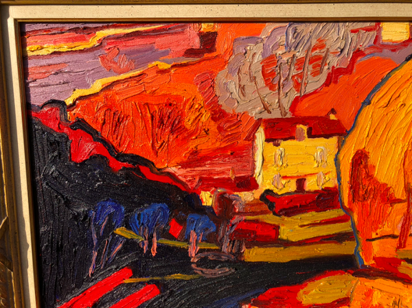Olieverf op board - Het huis van het 'Lac de la Barthe'