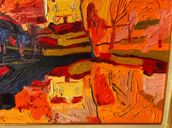 Origineel werk Peter Bol (1947) - Olieverf op board - Het huis van het 'Lac de la Barthe'
