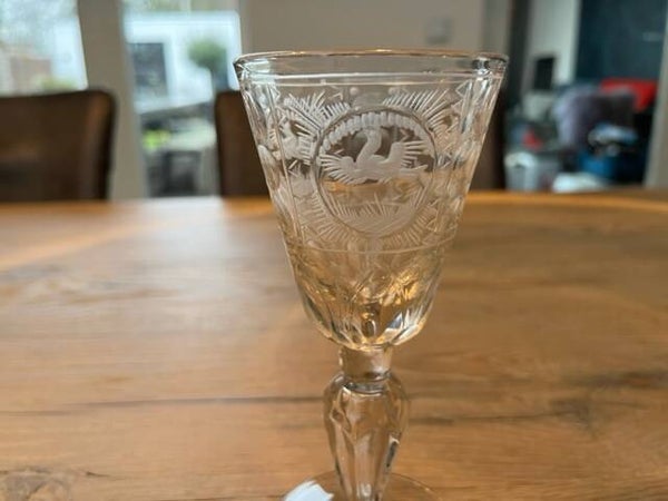 Antiek gegraveerd wijn glas - Duif - 18e eeuw